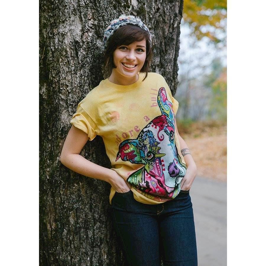 Hvis du elsker alt ved hunde, er dette en must-have t-shirt for dig! De flotte farver og det søde motiv af en hund, kan ingen modstå og den er perfekt som en gaveidé.