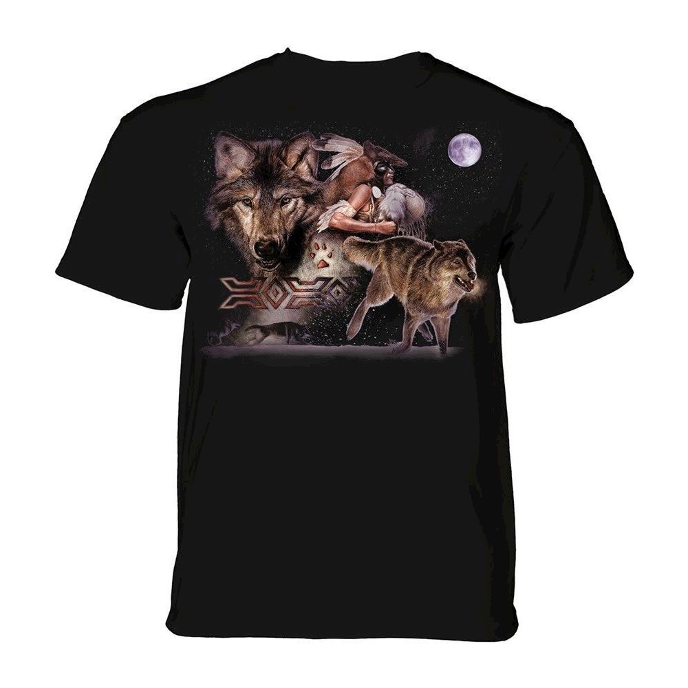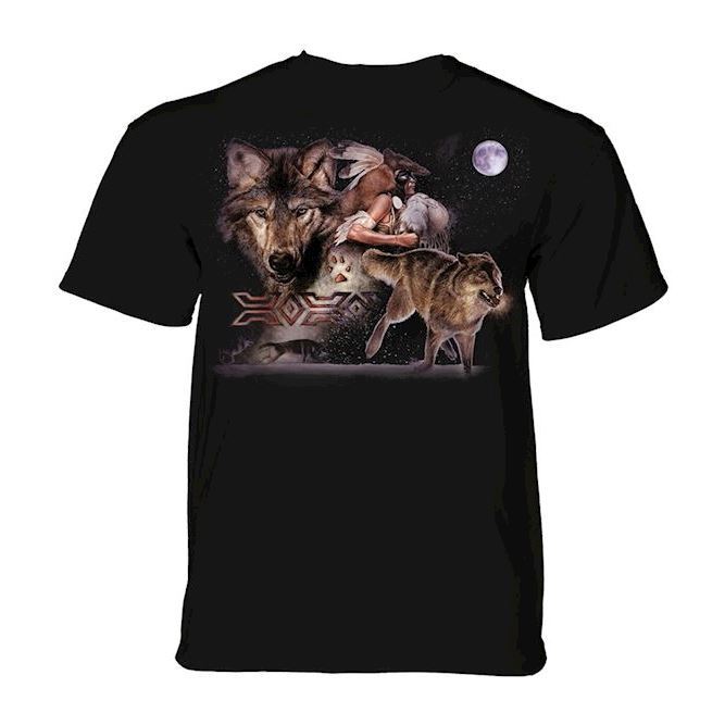 Sort t-shirt med smukt motiv af ulve og indianer. I baggrunden er den smukke fuldmåne