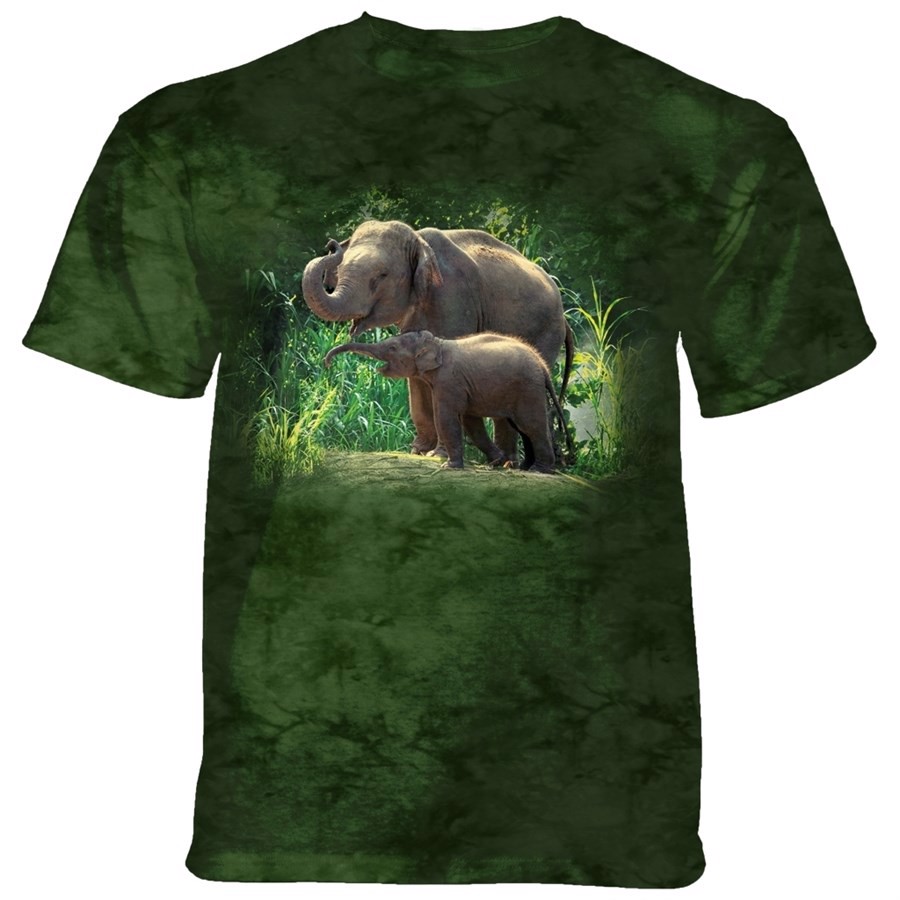 Super flot bomulds bluse med miljøvenligt tryk. Lækker t-shirt fra The Mountain med to elefanter der står og spiser