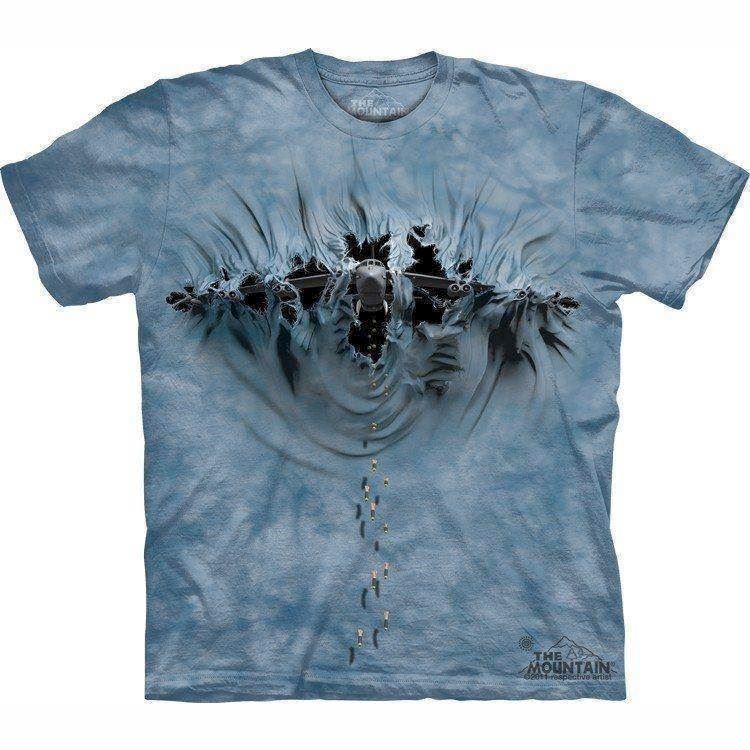 Flot illusion af et B52 bombefly, der bryder igennem forsiden af t-shirt'en. Tæppebomb dit eget tæppe derhjemme.