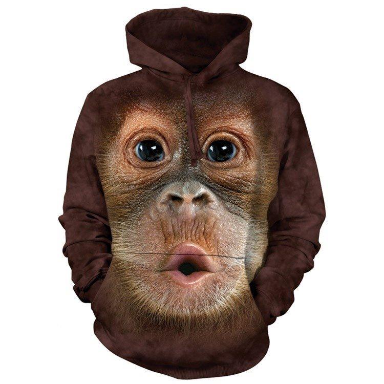 Super sød hoodie med en baby orangutan som motiv. Billedet er big face og zoomer helt ind på abens mimik.