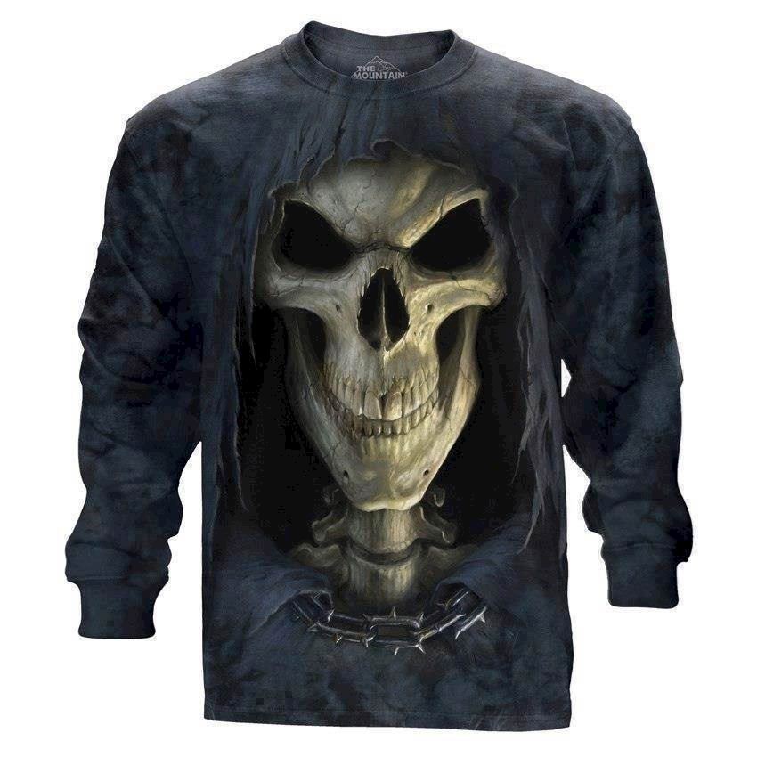Utroligt flot sort langærmet trøje med Døden i 3D-effekt, der nærmest springer frem fra tøjet. Virkeligt uhyggeligt - på den fede måde. God til halloween, eller som gave.