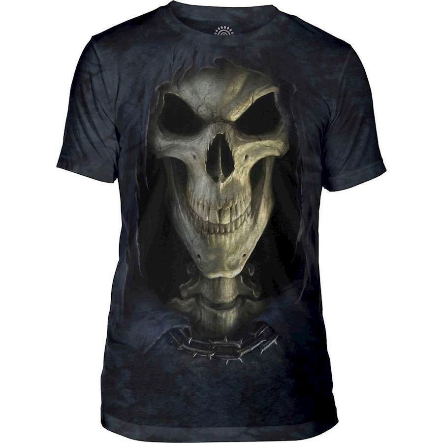 Uhyggeligt skull motiv fylder forsiden af denne nye t-shirt fra The Mountain. Så er du til seje dødningehovedmotiver, er denne kortærmede bluse lige noget for dig.