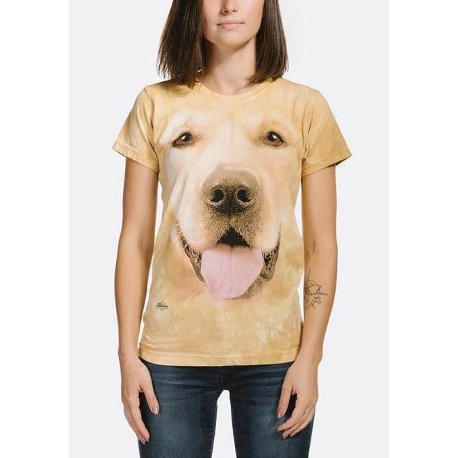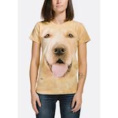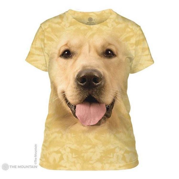 Faconsyet dame t-shirt med hundemotiv. Find en t-shirt med din helt egen hunderace. Her ses en fantastisk golden retriever.
