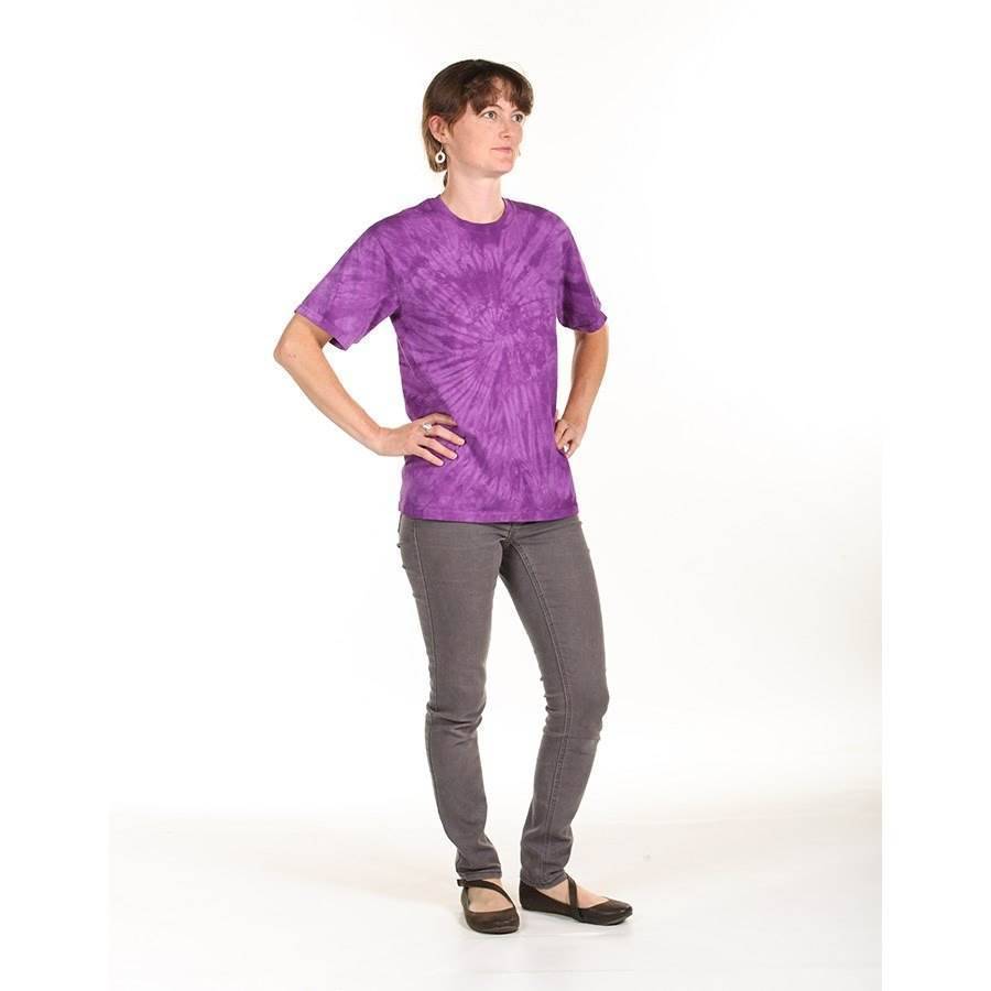 Lækker farvespil i denne lilla/blå-marmorerede t-shit. En interessant melering, der giver mindelser om tie-dye, men det er altså den sædvanlige The Mountain kvalitets-gennemfarvning.