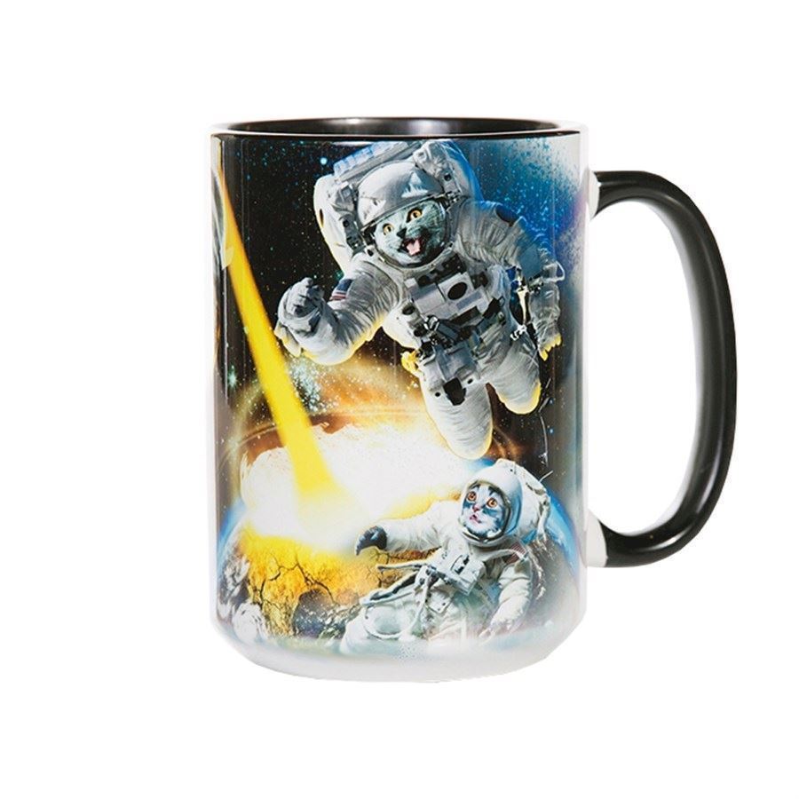 Kaffekrus med kat på månenKeramik tekop med kat i rumdragt