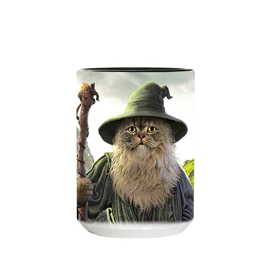 Dette krus har et imponerende motiv med kat som Gandalf.