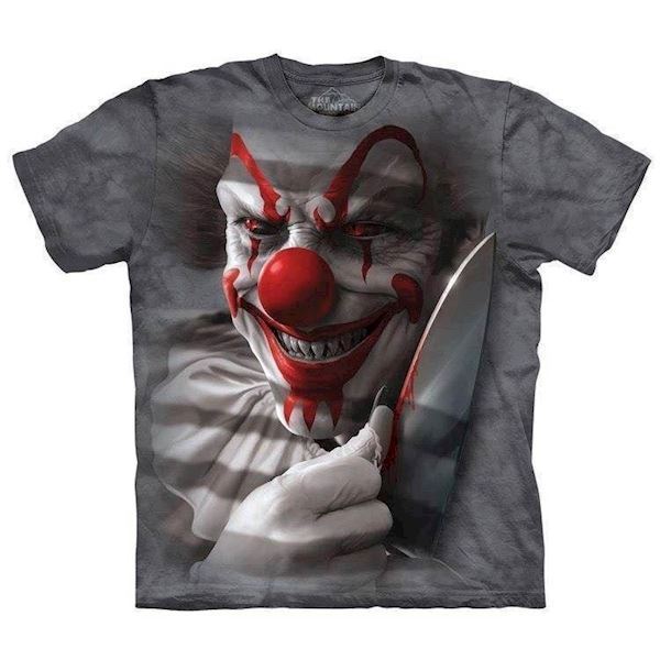Uhyggelig klovn med kniv. Angst for klovne er udbredt i børneårene og har et navn, coulrofobi, defineret som en sygelig eller irrationel frygt for klovne. Men hvis en klovn ser sådan her ud, og er bevæbnet med en kniv, er det vel næppe irrationelt at være bange for ham.