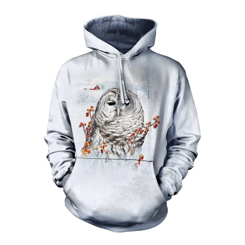 Flot hættetrøje med ugle i sne.