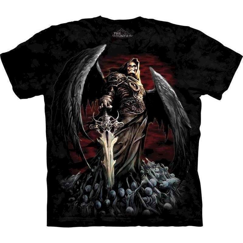 Endnu en heavy metal-trøje fra The Mountain. Flot sort t-shirt med print af Døden, der står, med sværd i hånden, på en knoglebunke. Så bliver det næppe mere metal.