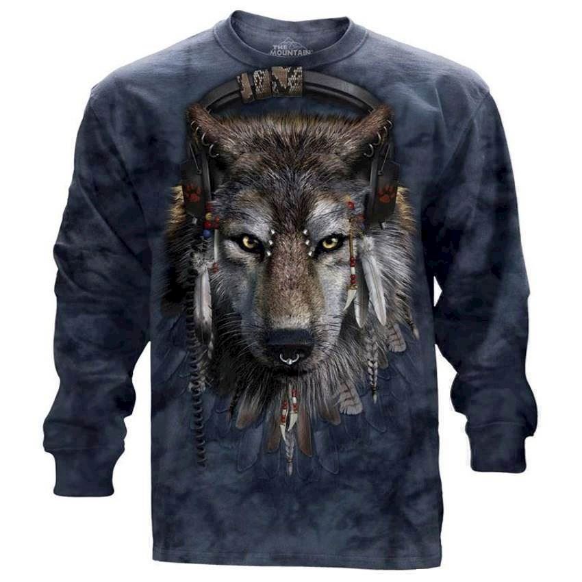 En t-shirt med et sjovt motiv af en sej ulv, som også agerer som DJ med et snært af indianer udtryk. Motivet er både sjovt og sejt, hvilket er perfekt som gave til én du holder af.
