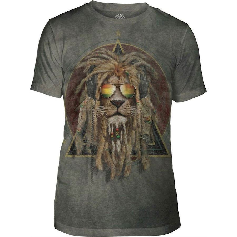Retro Lion med dreadlocks er motivet på denne nye grønne t-shirt fra The Mountain.