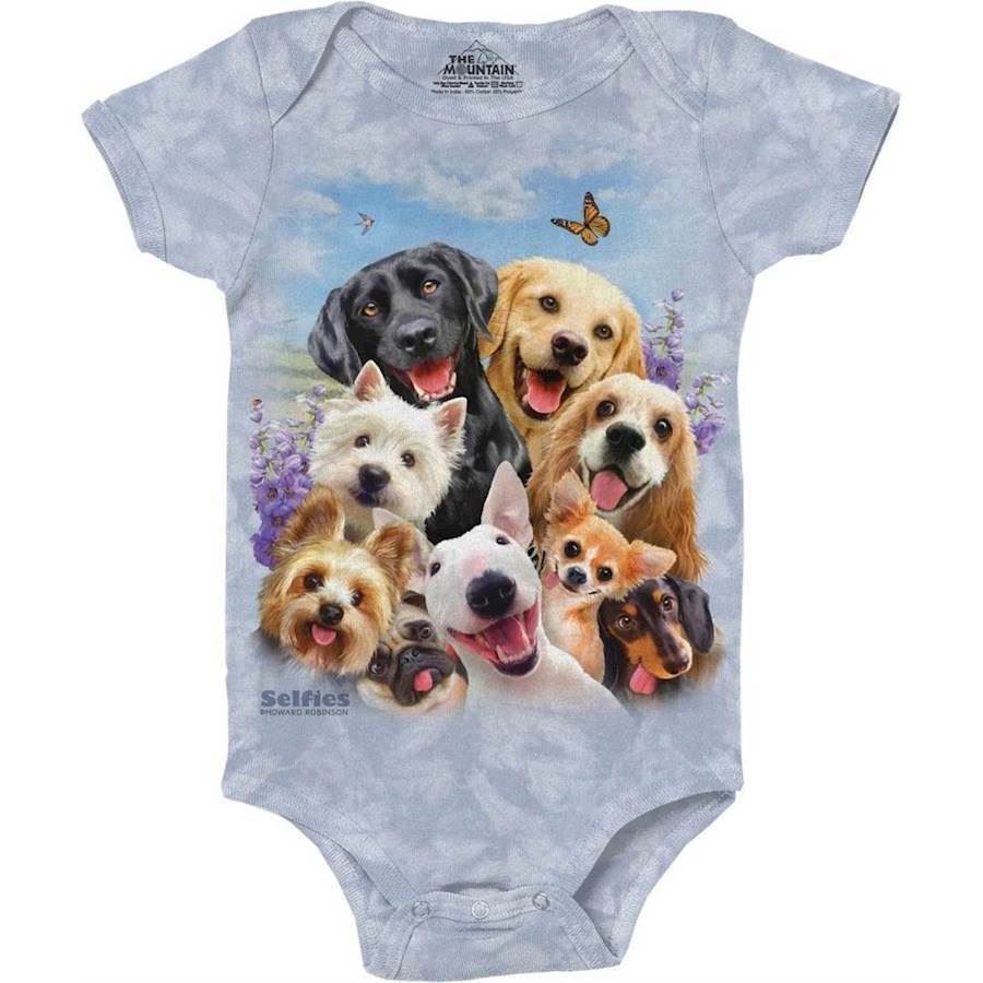 Lækker baby body med motiv af en hunde selfie - i blød bomuld med kemikaliefri indfarvet motiv.
