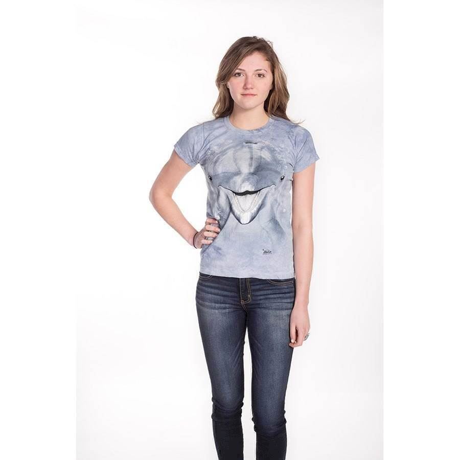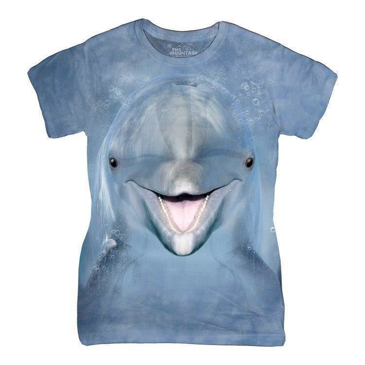 Sjov bluse med en meget glad delfin. Denne pasform giver et mere feminint udtryk, men giver stadig ejeren et dejligt motiv, som man kun kan blive glad af.