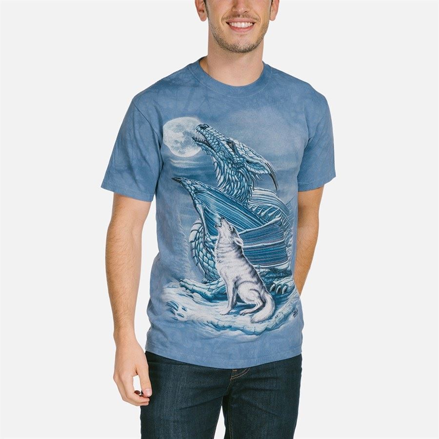 T-shirt med drage og ulv der i forening hyler mod fuldmånen i et snelandskab. Et motiv som er lavet ud fra fantasien af vores designere. Denne t-shirt er perfekt som gave til din søn eller til dig selv, hvis du elsker fantasy-verdenen.