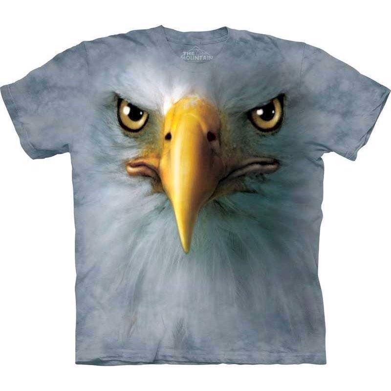 Her er en flot t-shirt med et ørnemotiv helt tæt på. Hvis du vil have en t-shirt med tryk eller motiver, er du kommet til det rette sted, vi har nemlig over 3000 forskellige tryk på t-shirts.