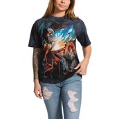T-shirt med indianermotiv. Kortærmet bluse med flot indfarvning i stoffet af ørn, ulv og indianer.