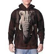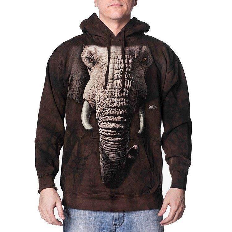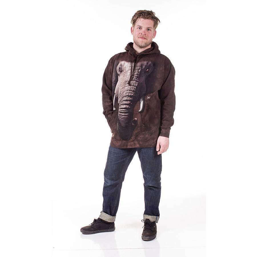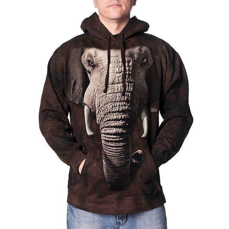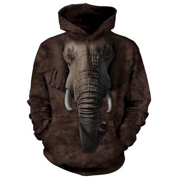 En dejlig varm hættetrøje, som har et flot motiv af en elefant helt tæt på. Billedet er lavet på en flot og realistisk måde og passer til de flestes garderobeskabe