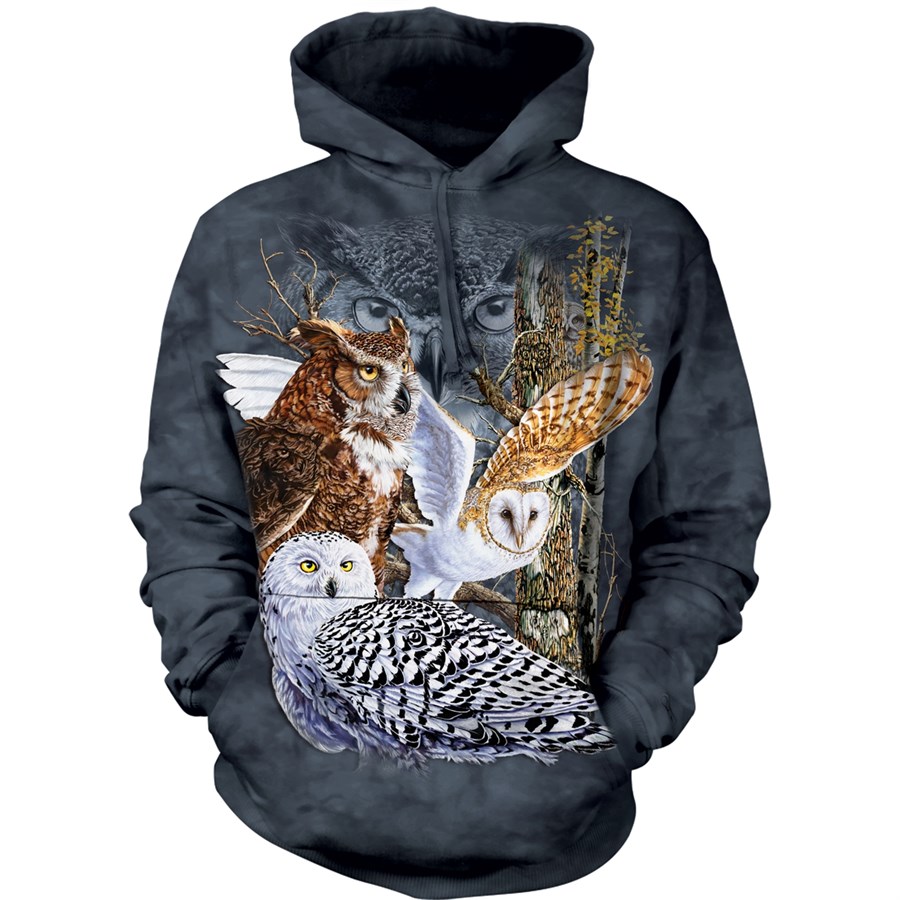 Hættetrøje med uglemotiv. Der er skjult 11 ugler i motivet.