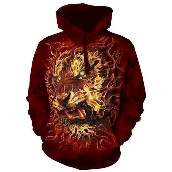 Et sejt og anderledes motiv, hvor optegningen af tigeren er udformet af ild. Dette giver blusen et ekstra sejt look, som kan bruges til et par jeans.
