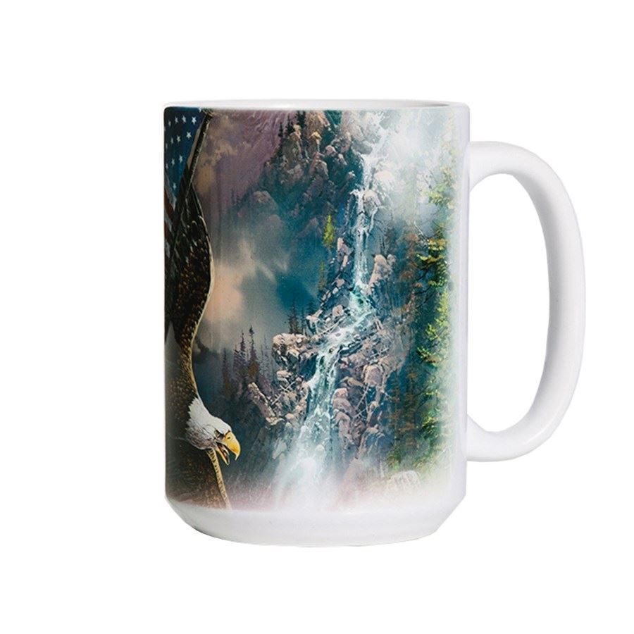 Kaffekrus med ørn og det amerikanske flagKeramik tekrus med flyvende ørn