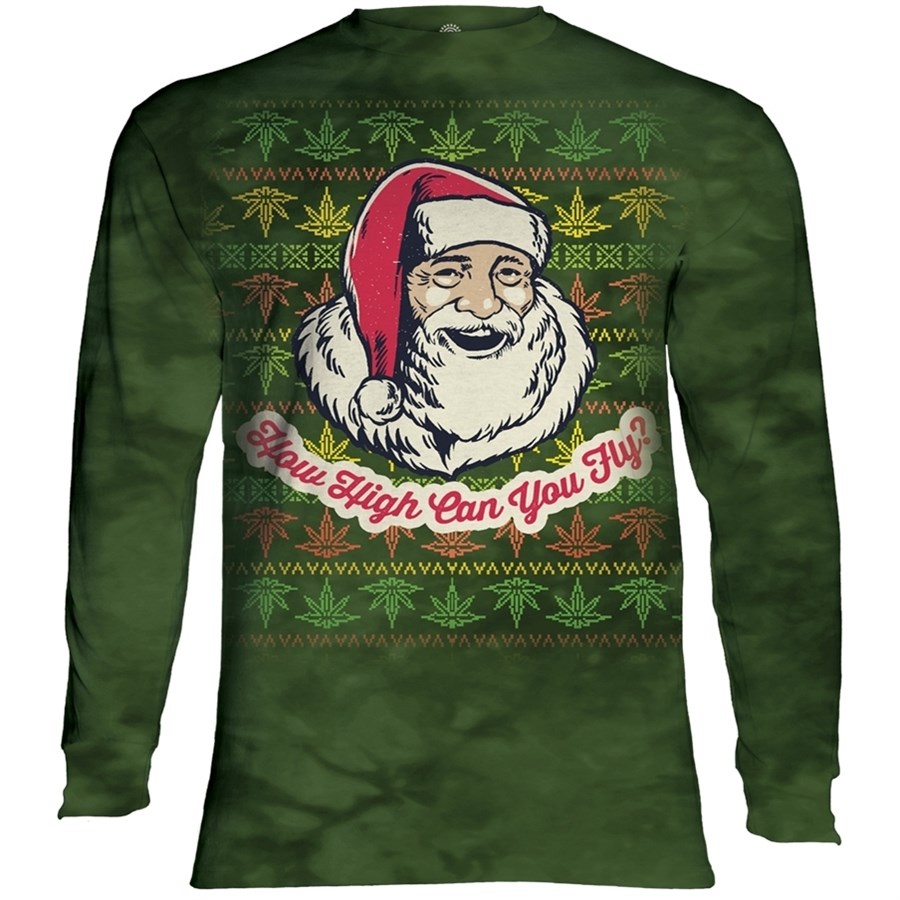 How High Can You Fly? Langærmet bluse med julemand og cannabis