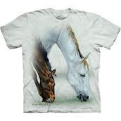 T-shirt med flot hingst. Her er der endnu et smukt og unikt kunstværk. Hesten i sig selv er virkelig smuk og godt udarbejdet, men det anderledes perspektiv i form af en skov, giver motivet et prik over i´et.