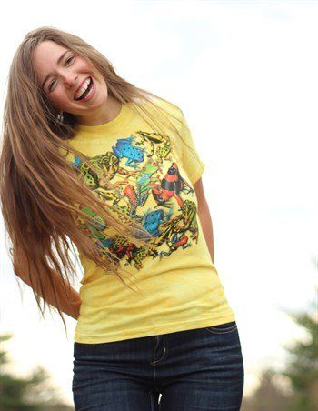 Hos ZooShirt har et kæmpe udvalg af forkskellige dyretryk på kvalitets t-shirts. Her har vi f.eks. et flot og farverigt frø motiv, som du kan tilføje til dit klædeskab.