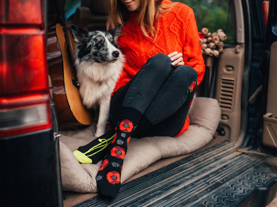 Good Mood adult socks - POPPY FLOWER, size 35-38