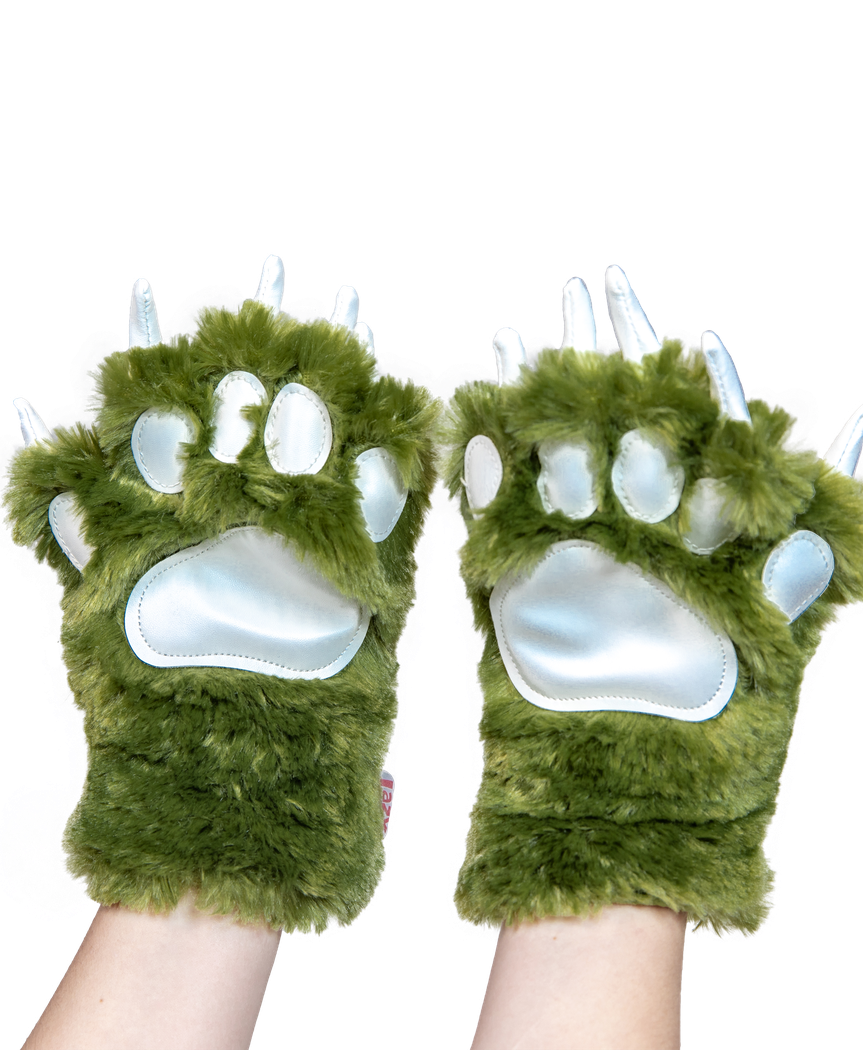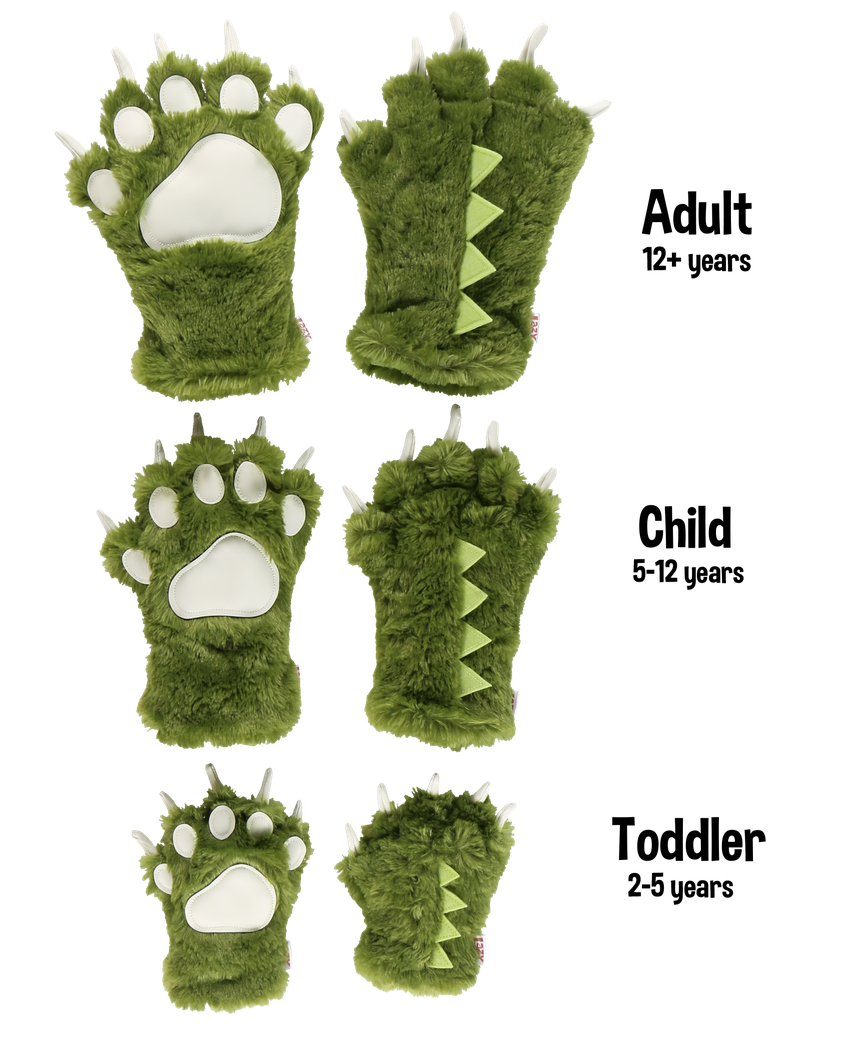 Green Dino Paw Mitts, Adult Large