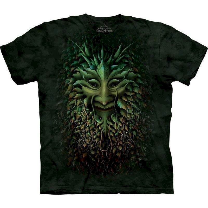 Flot grøn t-shirt med venlig "skov-mand". Flotte grønne nuancer og et stilfærdigt motiv, der passer til det meste. Både små og store størrelser.