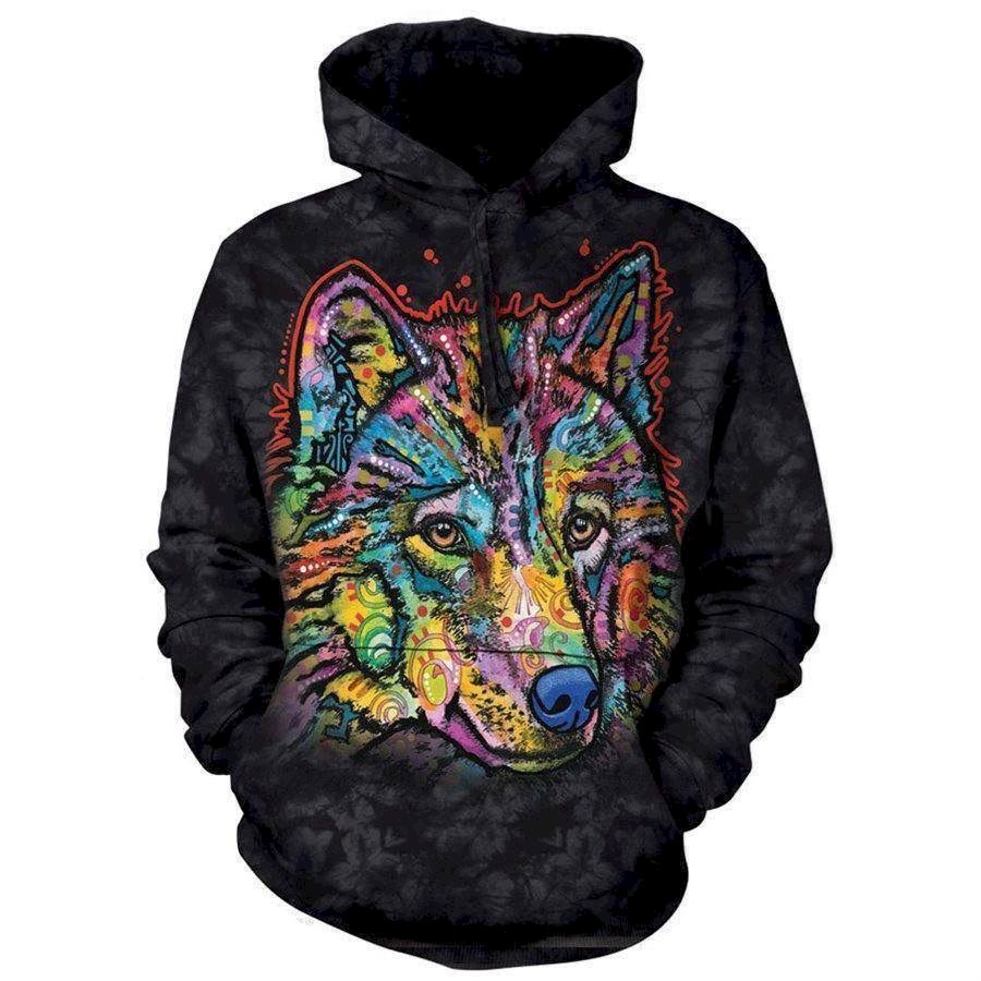 Et super sødt og farverigt motiv af en glad og tilfreds ulv. Denne farverige bluse lyser et hvert outfit op og passer til det meste, eftersom baggrunden er en meget neutral farve.
