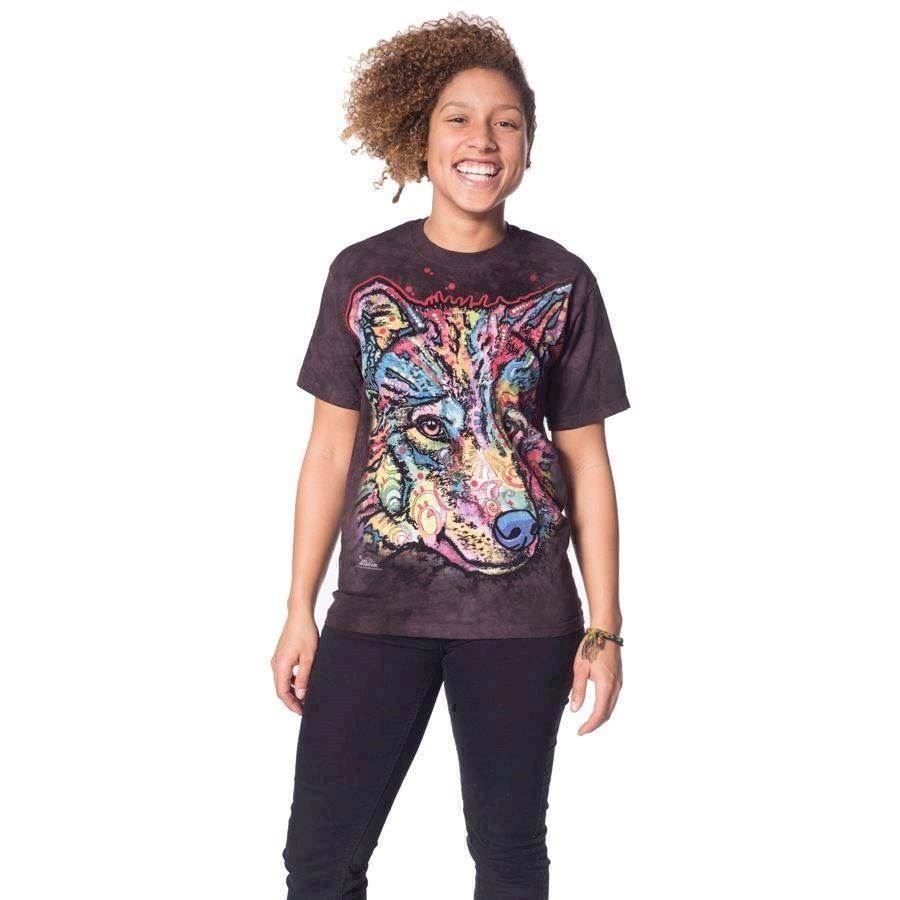 Et super sødt og farverigt motiv af en glad og tilfreds ulv. Denne farverige bluse lyser et hvert outfit op og passer til det meste, eftersom baggrunden er en meget neutral farve.