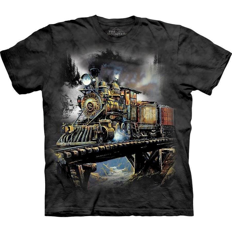 Flot himmelblå t-shirt med godstogs-motiv: Et damp-lokomotiv med malm.
