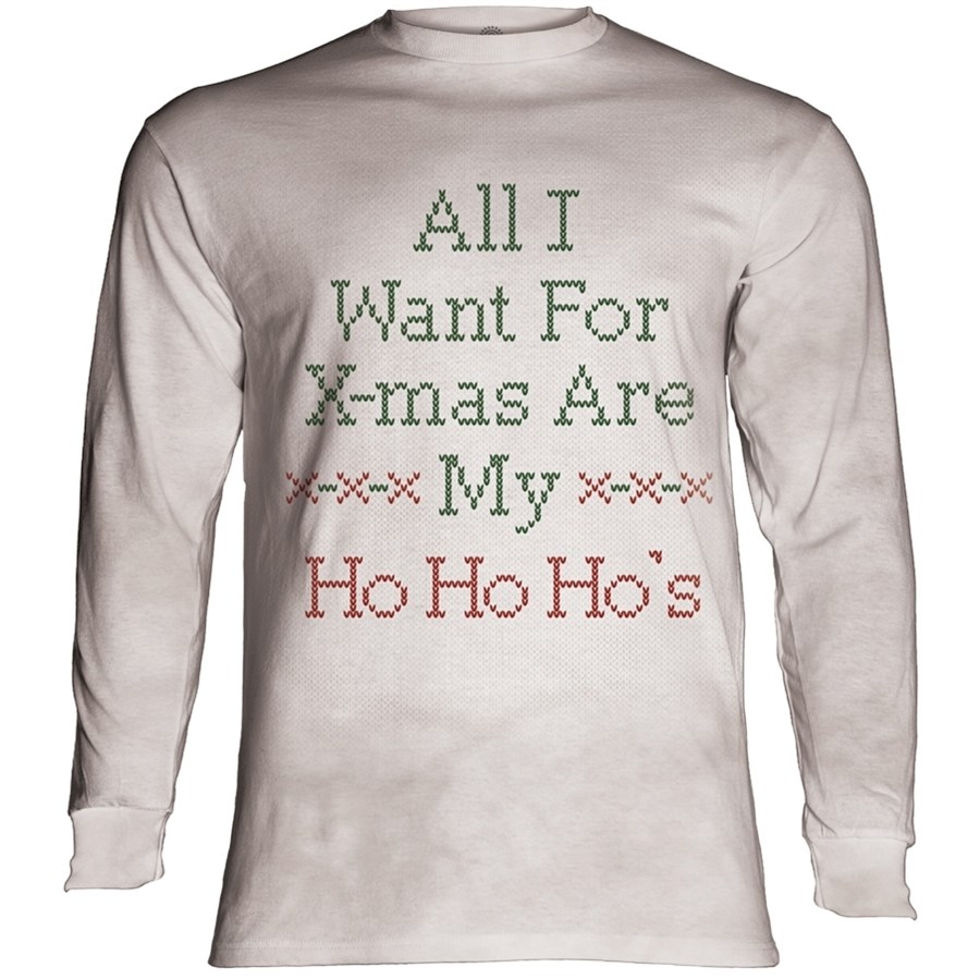 All I Want For X-mas Are My Ho Ho Ho´s - julebluse med tryk, der ligner strik