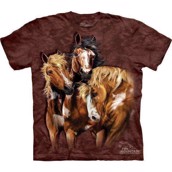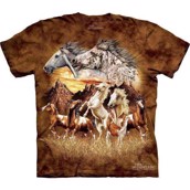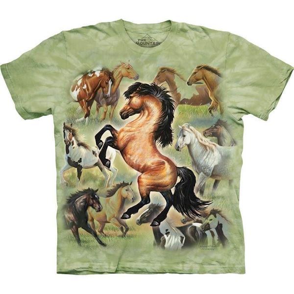 T-shirt med masser af heste. Flot hestecollage på en køn lysegrøn trøje.