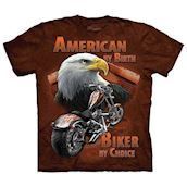 Brun t-shirt med ørnemotiv. Det amerikanske flag vejrer i baggrunden på dette patriotiske trøje-motiv.