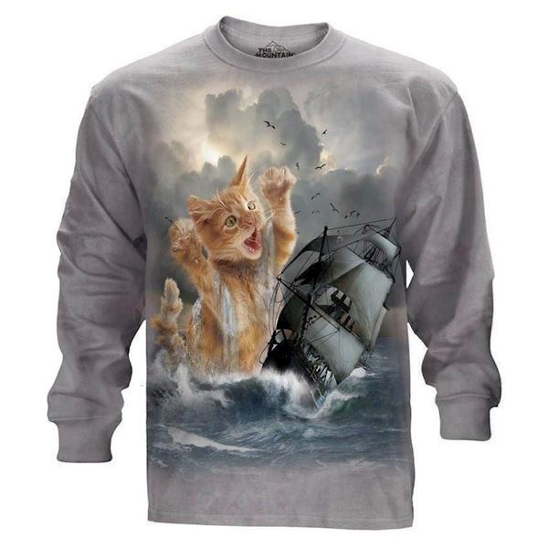 Eftersom det desværre ikke er sommer hele året rundt i Danmark, kan du selvfølgelig også få super fede tryk på langærmede bluser og den her kat er da umulig at modstå.
