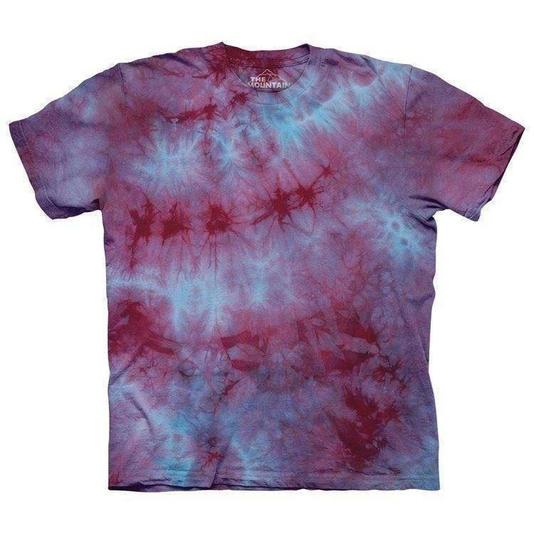 Flot marmoreret t-shirt i lyseblå og rødlige farver. Minder om tie-dying, men det er altså det sædvanlige kvalitetstryk fra The Mountain.