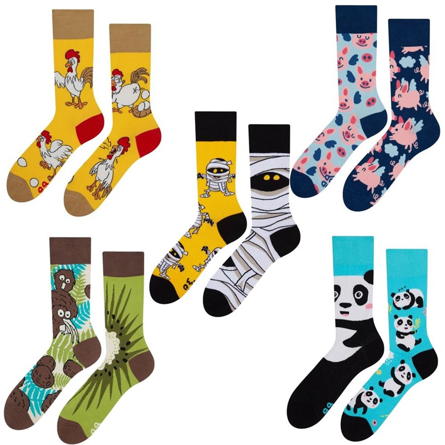 Denne mystery box indeholder 5 par forskellige assorterede sjove par sokker.