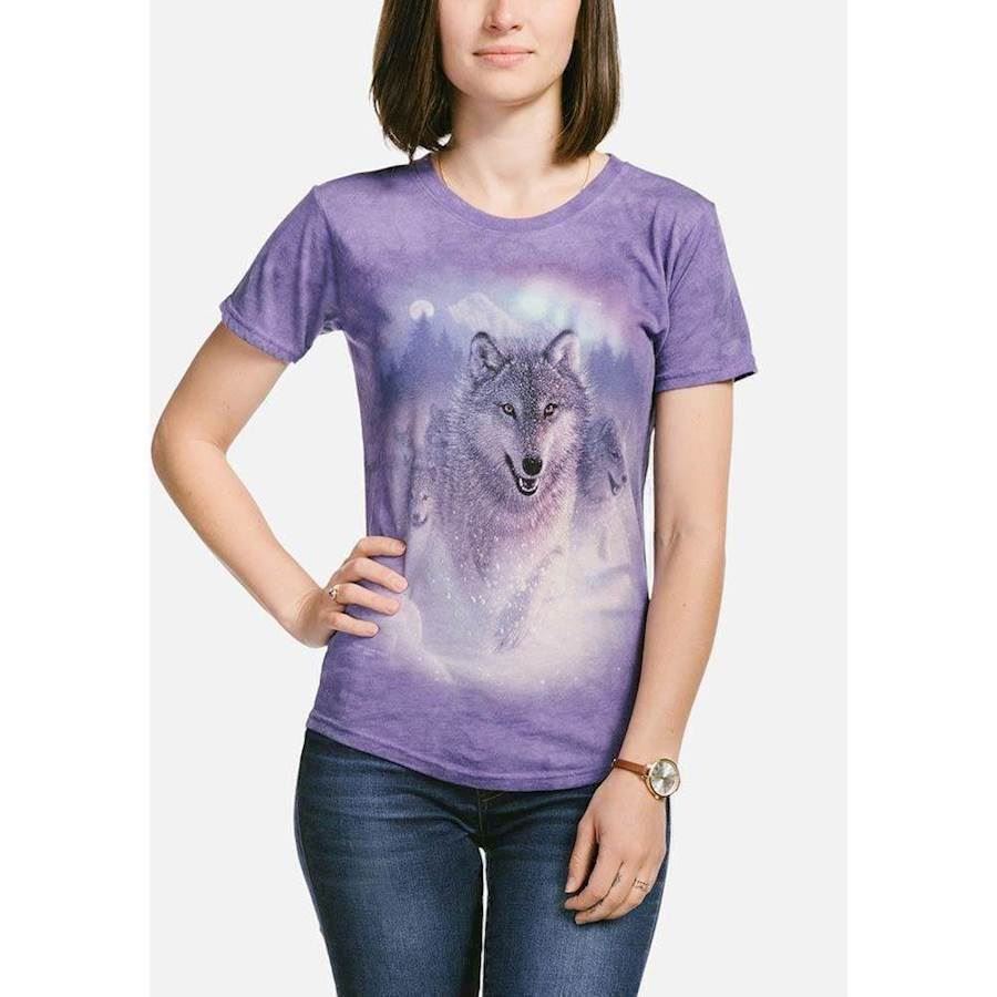 Ny T-shirt model til kvinder med super pasform, der fremhæver de kvindelige former. Kortærmede damebluser med flotte natur motiver - her med ulve.
