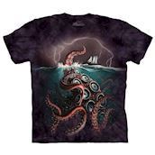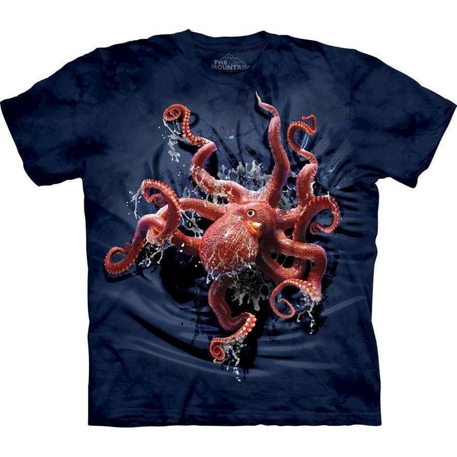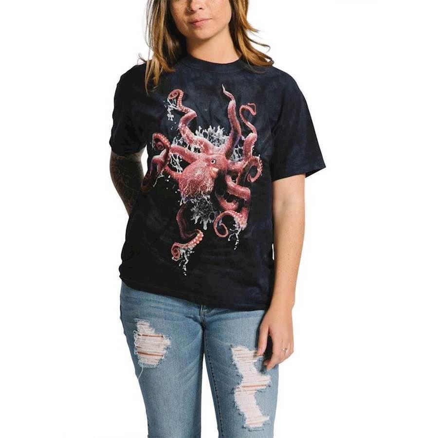 T-shirt med ottearmet blæksprutte. Super flot illustration af blæksprutte der kravler op ad den kortærmede bluse.