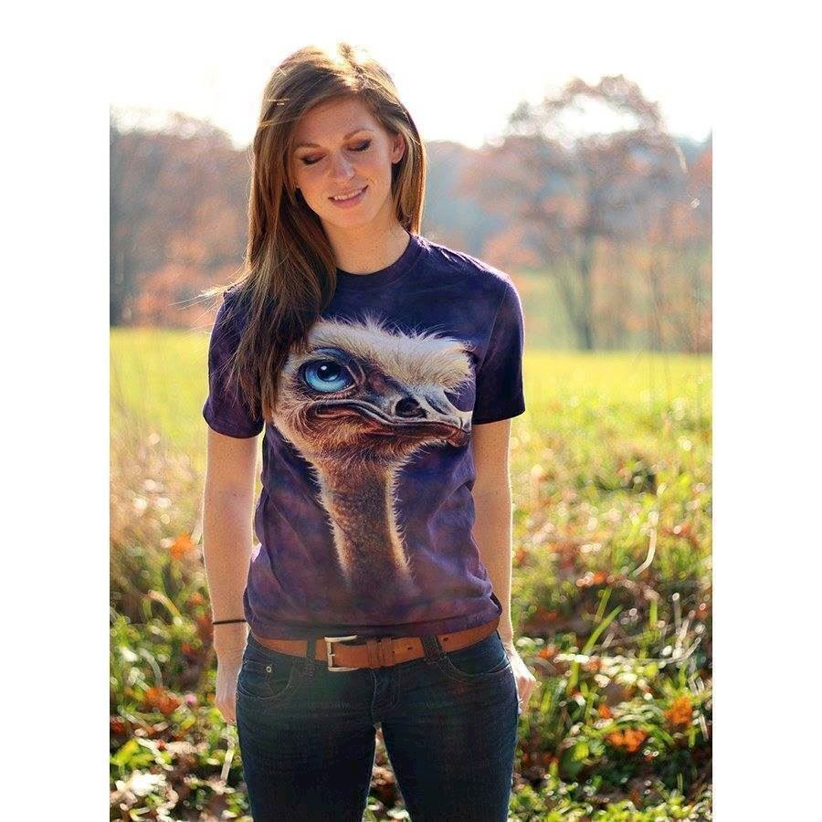Det er et sjovt strudsemotiv på denne t-shirt og det passer fint sammen med strudsen generelt. Strudse er nogle specielle fugle, som ikke engang kan flyve.