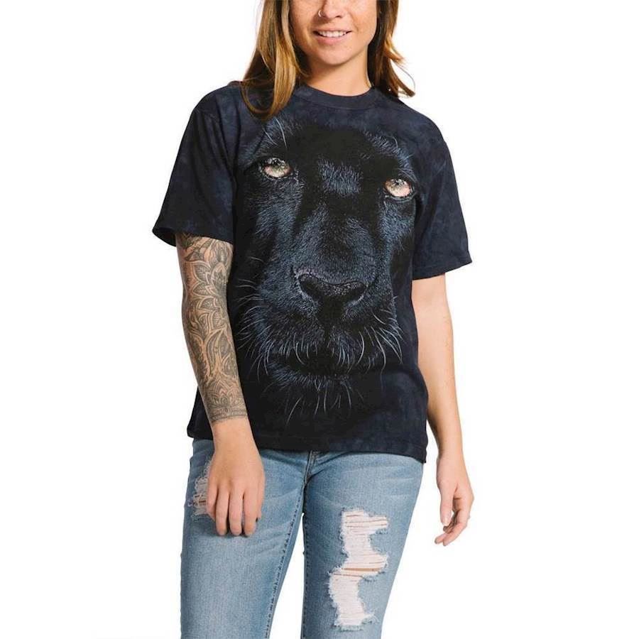 T-shirt med sort panter. Super flot kortærmet bluse med kemikaliefri indfarvning af livagtig panter.