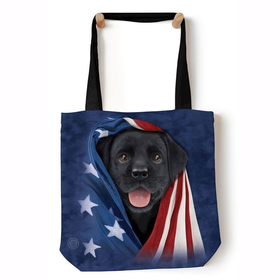 Patriotic Black Lab Pup Tote Bag