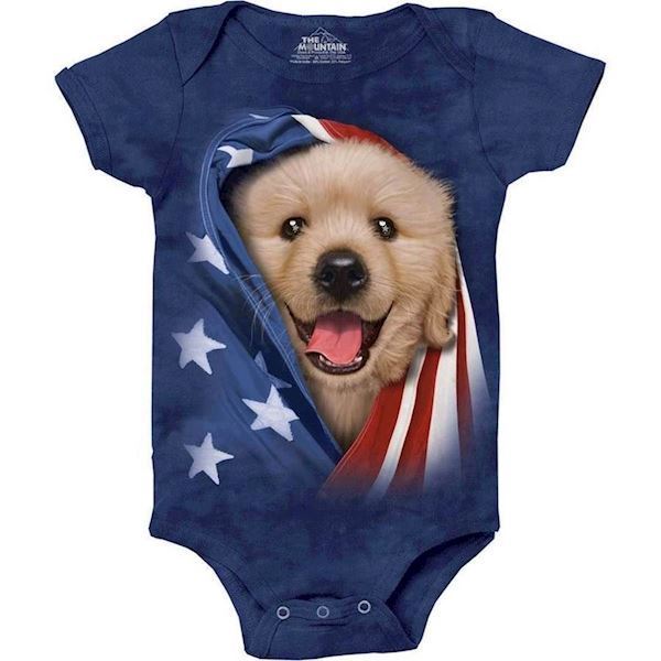 The Mountain bodystocking - babybody med patriotisk golden retriever hvalp