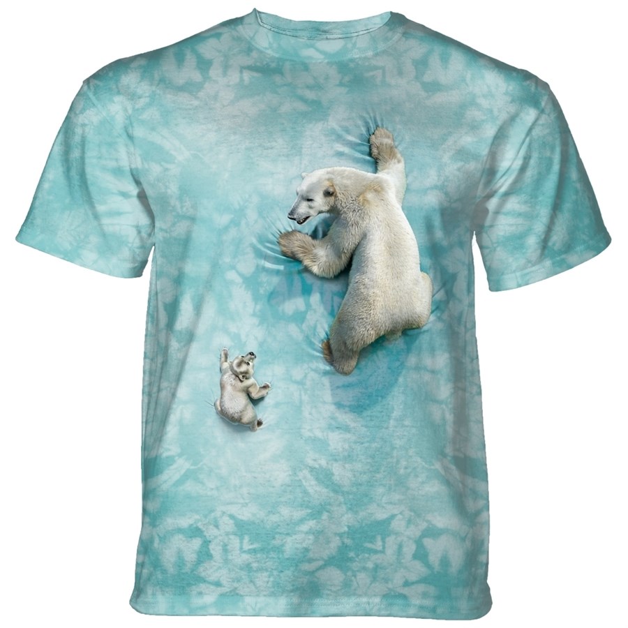 Super flot bomulds bluse med miljøvenligt tryk. Lækker t-shirt fra The Mountain med sød isbjørn med unge, der klatrer op ad blusen