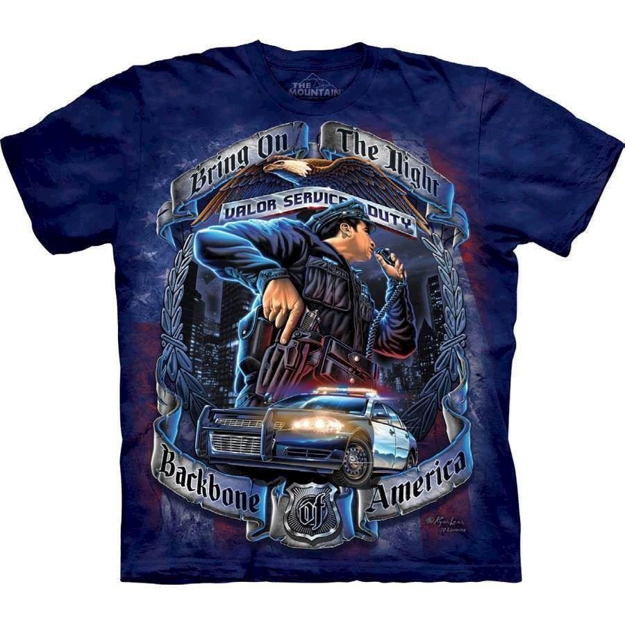 T-shirt med armerikansk politimand. Blå t-shirt med politi-motiv.