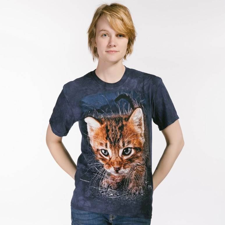 T-shirt med foto af nuttet killing, der har udset sig et bytte.