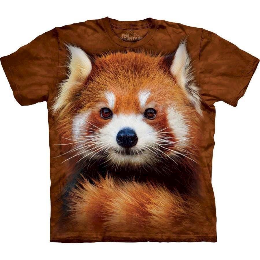 T-shirt med rød panda. Den søde røde panda er sjot nok ikke i familie med den "rigtige" panda. Det er heller ikke en bjørn eller en kat, selvom den er blevet kaldt en "bjørnekat" eller "kattebjørn". Den er mere i familie med ilder og vaskebjørn. Men den er i hvert fald nuttet, og her er en trøje med hele dens bedårende ansigt.